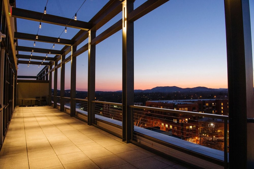 Meeting Planner Info: Level 10 is an indoor/outdoor rooftop event venue with a 12 foot tall, 50 foot long glass wall that opens up to a 10 foot by 80 foot wide heated patio facing west, overlooking the Blue Ridge Mountains. The event space has four sets of doors allowing 50% of the wall to open, creating an Open Air Atmosphere inviting the beauty of the outside, inside. We offer a clean, modern aesthetic with a fresh perspective for weddings, corporate events, conference meetings, off-sites, fundraisers, workshops, welcome parties, and rehearsal dinners!