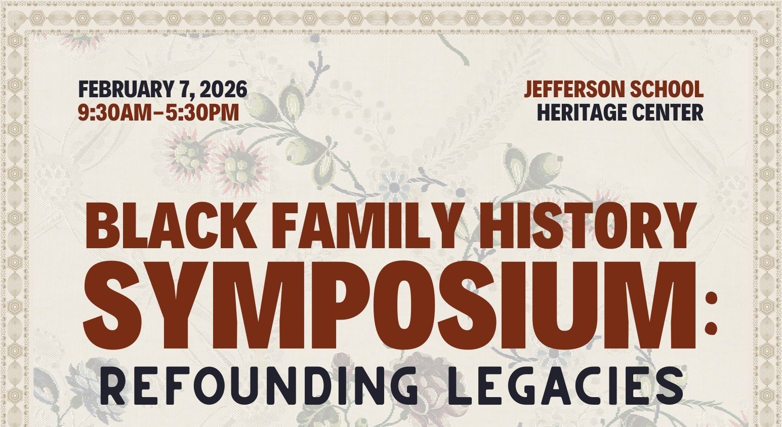 Join us for the 2026 Black Family History Symposium on Saturday, February 7, 2026 from 9:30AM to 5:30PM at the Jefferson School Heritage Center.