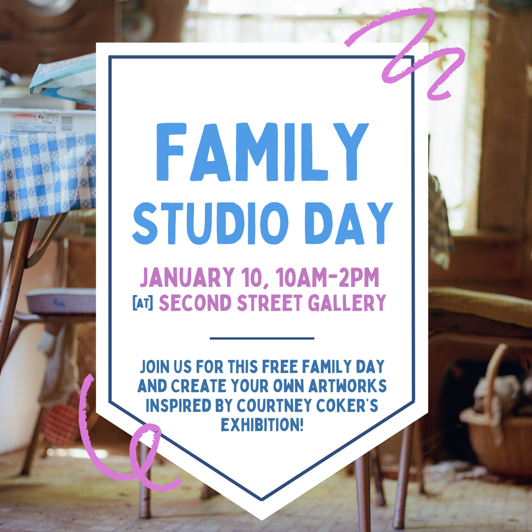 Join us on January 10, 10am-2pm, for the first Family Studio Day of 2026! The featured project will be reflective of the photographs on view in "Possibility," a solo exhibition of works by Courtney Coker. Prompted by the domestic spaces she’s captured inside an uninhabited home, we’ll “rewild” our own tiny houses with natural elements such as moss and sticks. Plenty of other supplies will be available for extra embellishment. You can always step outside to gather your own bits of nature if you want to add a more personal flare! Markers, crayons, stickers, etc. will also be available in case you’d like to go in a different direction.