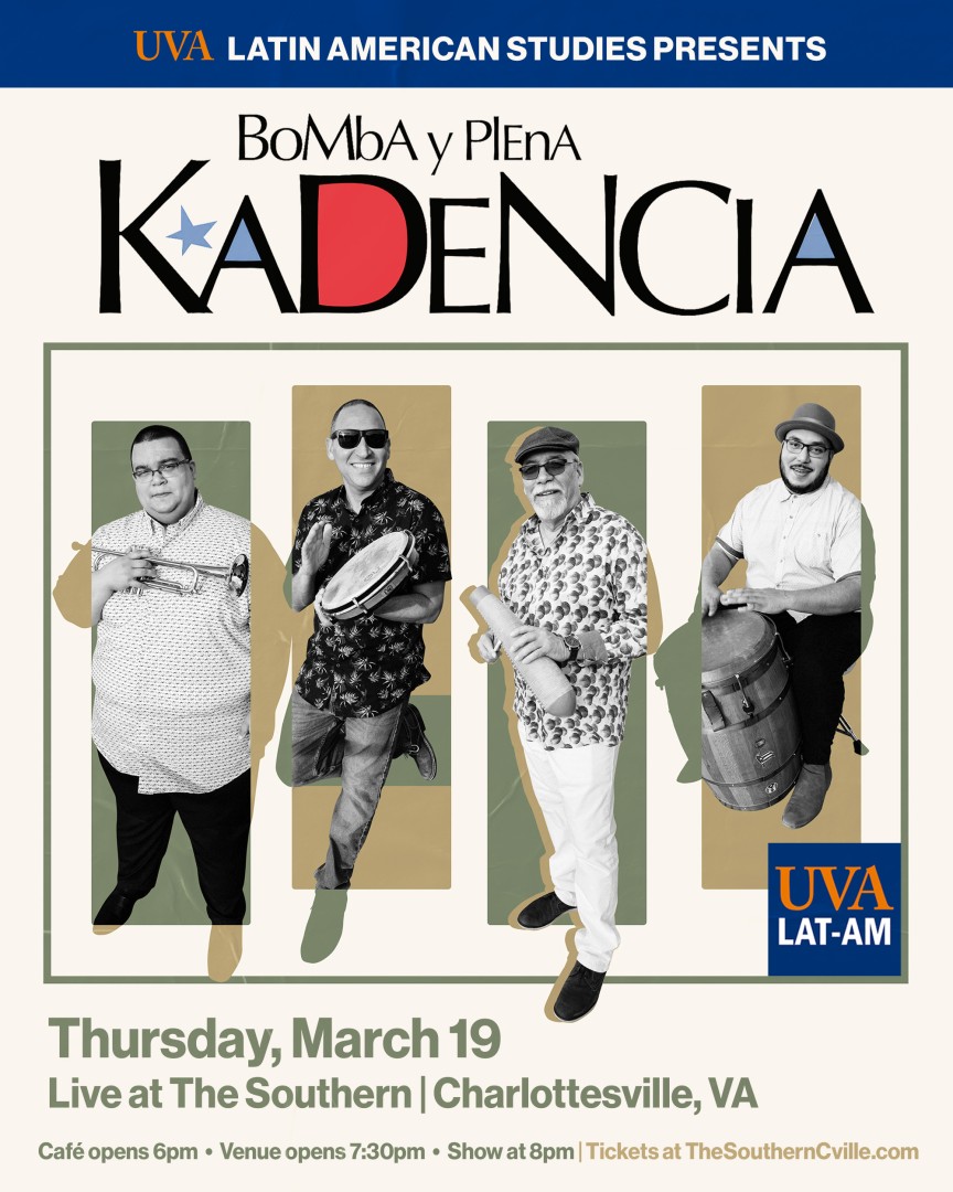 The UVA Latin American Studies Program is proud to present a high-energy performance by the award-winning Afro-Puerto Rican ensemble Kadencia Orchestra on Thursday, March 19, 2026, at The Southern Café and Music Hall. Led by the father-son duo of Maurice Sanabria-Ortiz and Maurice “Tito” Sanabria, the Richmond-based orchestra is dedicated to preserving and promoting the rich traditions of Afro-Puerto Rican music. Known for their infectious rhythms and powerful brass section, Kadencia specializes in original Bomba, Plena, and Salsa. Their performances are not only a celebration of Caribbean culture but also a narrative experience, featuring lyrics that describe the social and cultural history of Puerto Rico. "Our mission is to make you dance and have a great time while learning about the culture and music of Puerto Rico," says founder Maurice Sanabria-Ortiz. The band has earned international acclaim, with their album En Otro Barrio recognized as one of the Top 20 albums of 2022 by Puerto Rico’s National Foundation for Popular Culture.