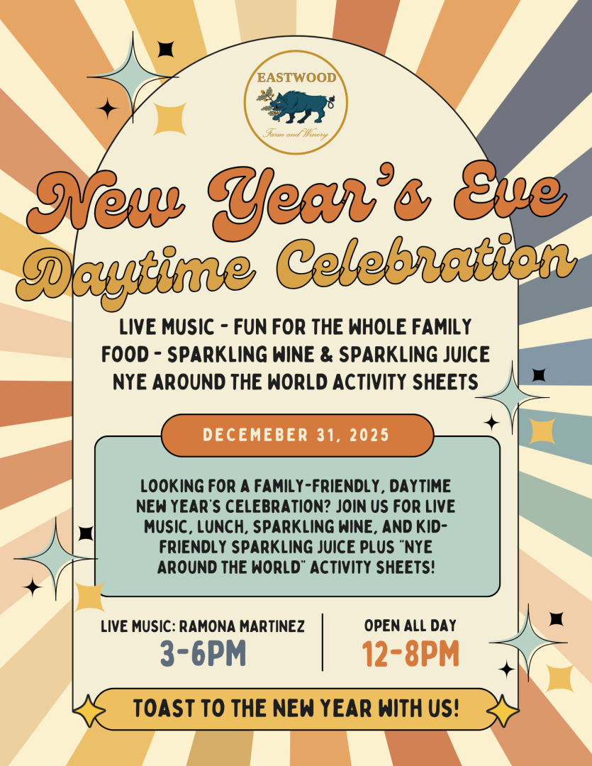 Looking for a family-friendly, daytime New Year’s celebration? Join us for live music, lunch, sparkling wine, and kid-friendly sparkling juice plus “NYE Around the World” Activity sheets!
