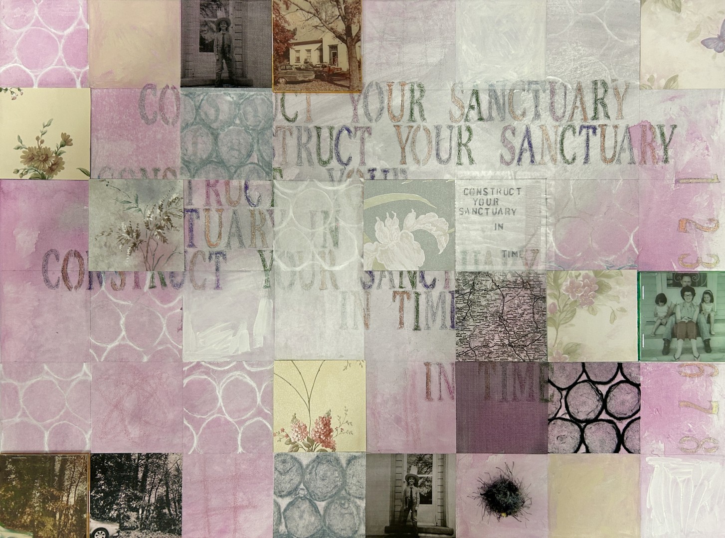Holding What Time Leaves Behind presents new work by Mimm Patterson exploring memory as material structure. Through intuitive weaving, text, encaustic, and collage, Patterson builds fields of containment and repetition where fragments meet in conditional relation. Raw edges, loose threads, and sealed surfaces record touch, use, and care, marking boundaries of invitation and restraint. The exhibition considers energetic imprint as a quiet register of lived experience and the slow labor of keeping what time leaves behind.