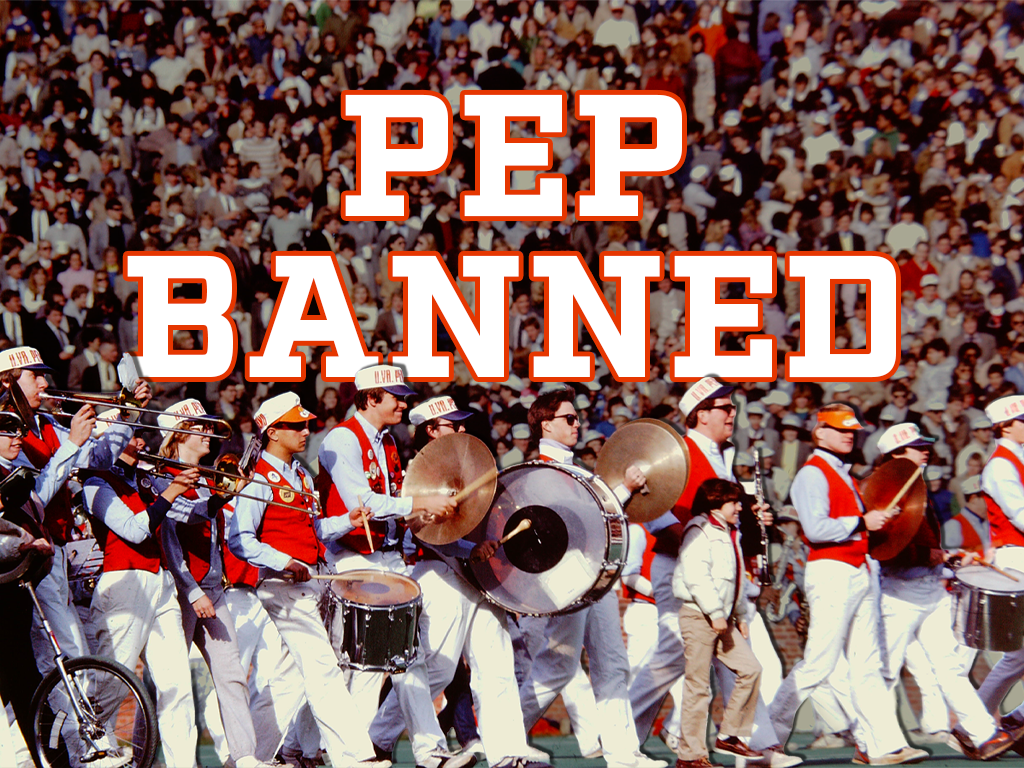 Founded in 1974 as a light-hearted scramble band, the Pep Band ran into its first major controversy in the fall of 1977 after offending the acting governor of Maryland. Laughter, mayhem, and adversity continued to follow the band from Scott Stadium to the Superdome until 2003 when it was permanently barred from all university events.