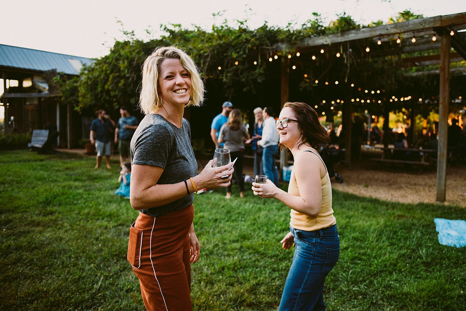 Live music, 100% estate wine and Blue Ridge Mountain view.