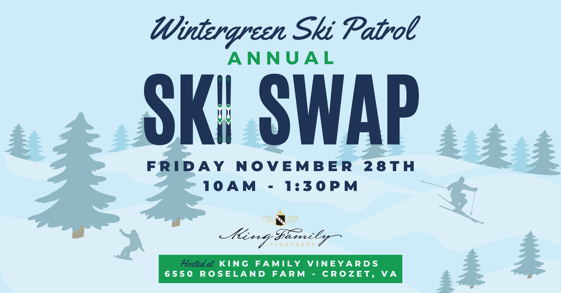 Join us for Wintergreen Ski Patrol's annual ski swap -- the day after Thanksgiving -- at King Family Vineyards!